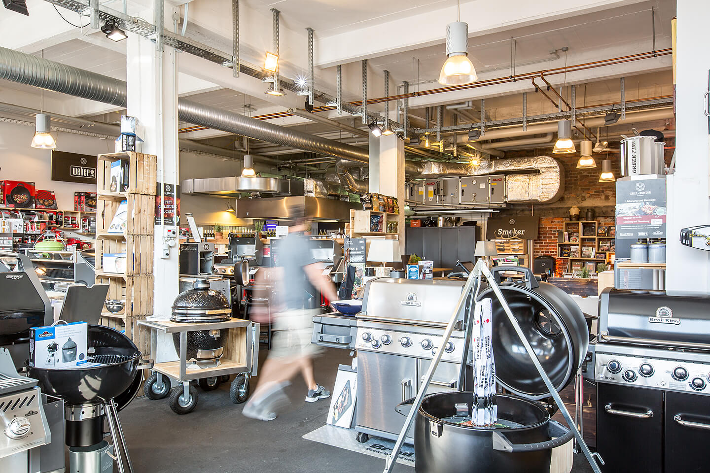Im Grill-Kontor Hamburg geht es heiß her: Auf rund 200 Quadratmetern präsentiert das dynamische Team um Inhaber Dirk Alberts eine beachtliche Auswahl diverser Grills der ganz großen Marken wie Weber, Napoleon, Monolith oder Broil King. Ein echtes Highlight ist für mich aber die integrierte Grill-Akademie. Hier finden Grillkurse für bis 16 Personen statt – und zwar Indoor!