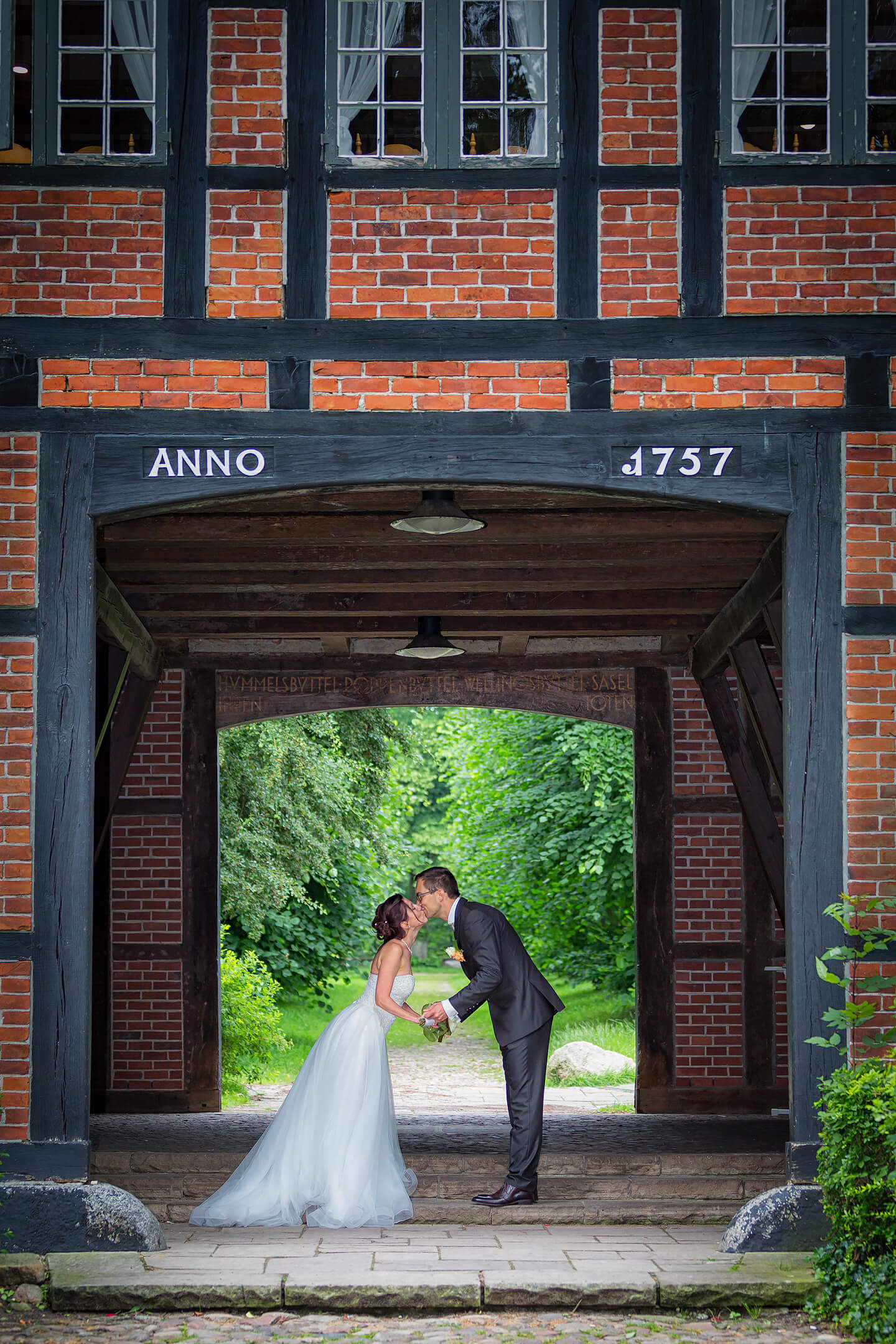 Hochzeitsfoto Brautpaar im Museumsdorf Volksdorf