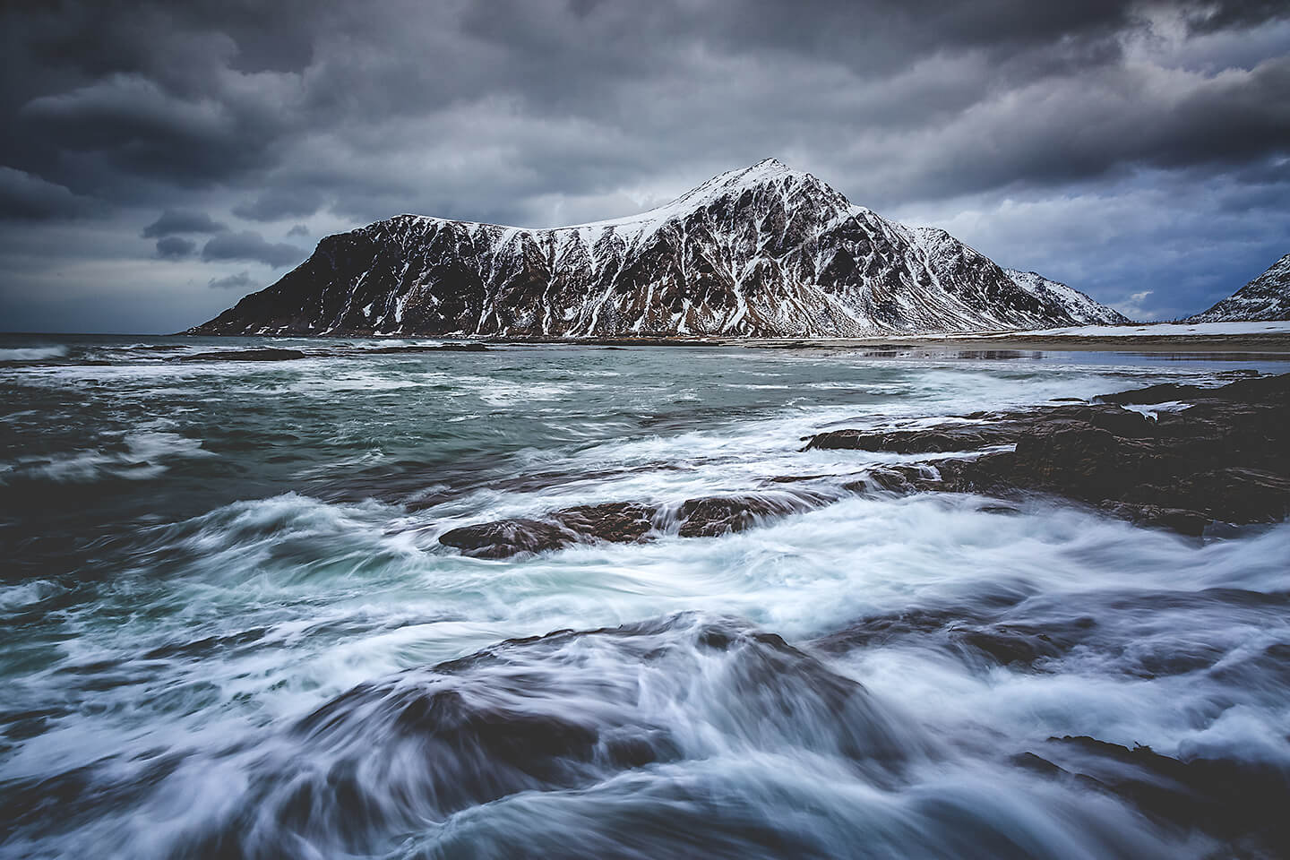 Die einmalige Form des Bergmassivs und die vorgelagerten schwarzen Dünen machen diesen Fotospot am Vestrahorn zu einem Must-have eines jeden Landschaftsfotografen.